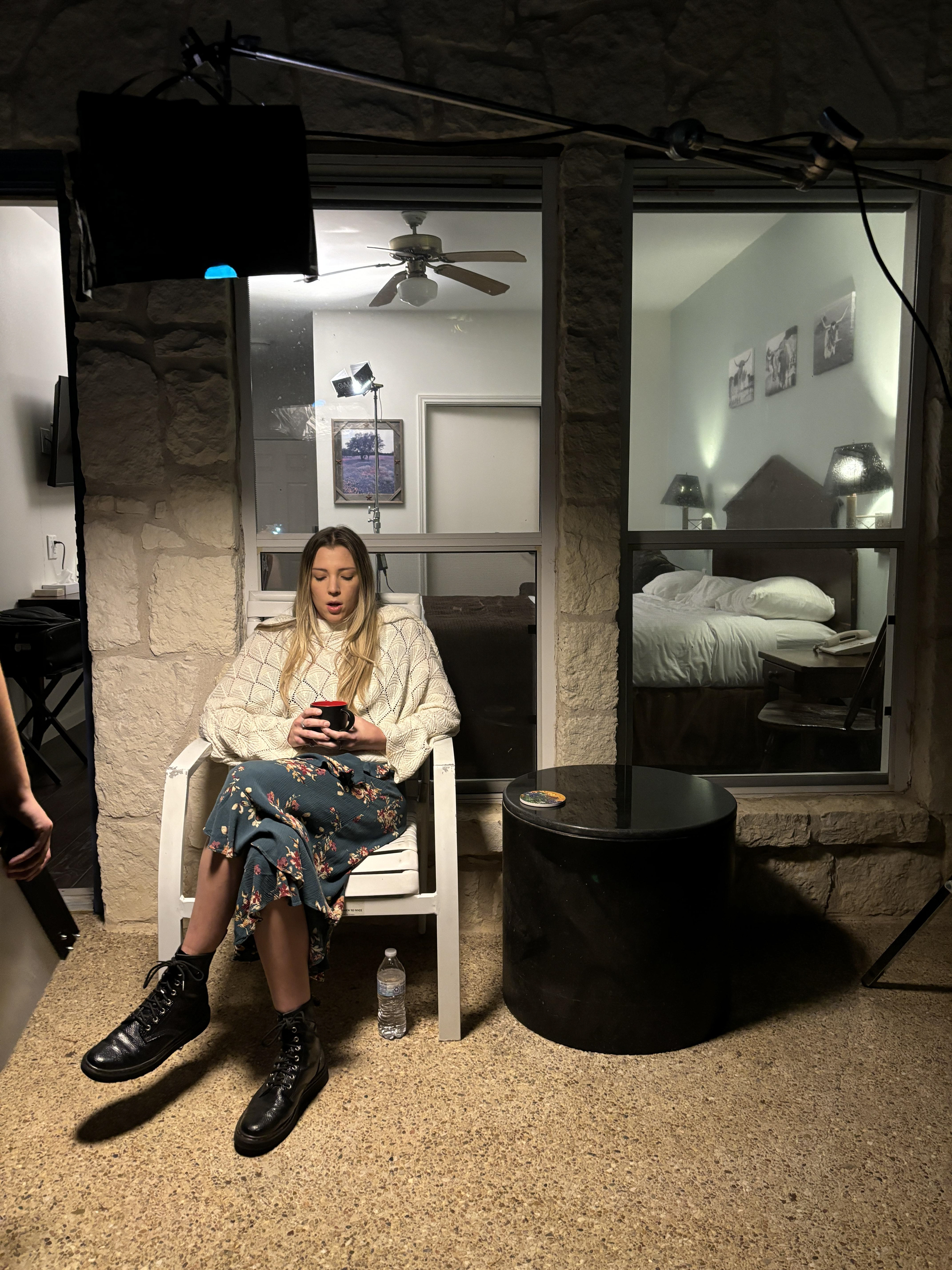 On this project I was the set decorator. The motel we filmed at already had a lot of furniture that was "on theme", so my job was to enhance that feeling. I added those longhorn prints, the bluebonnet coaster, and the Texas mug the actress is holding.