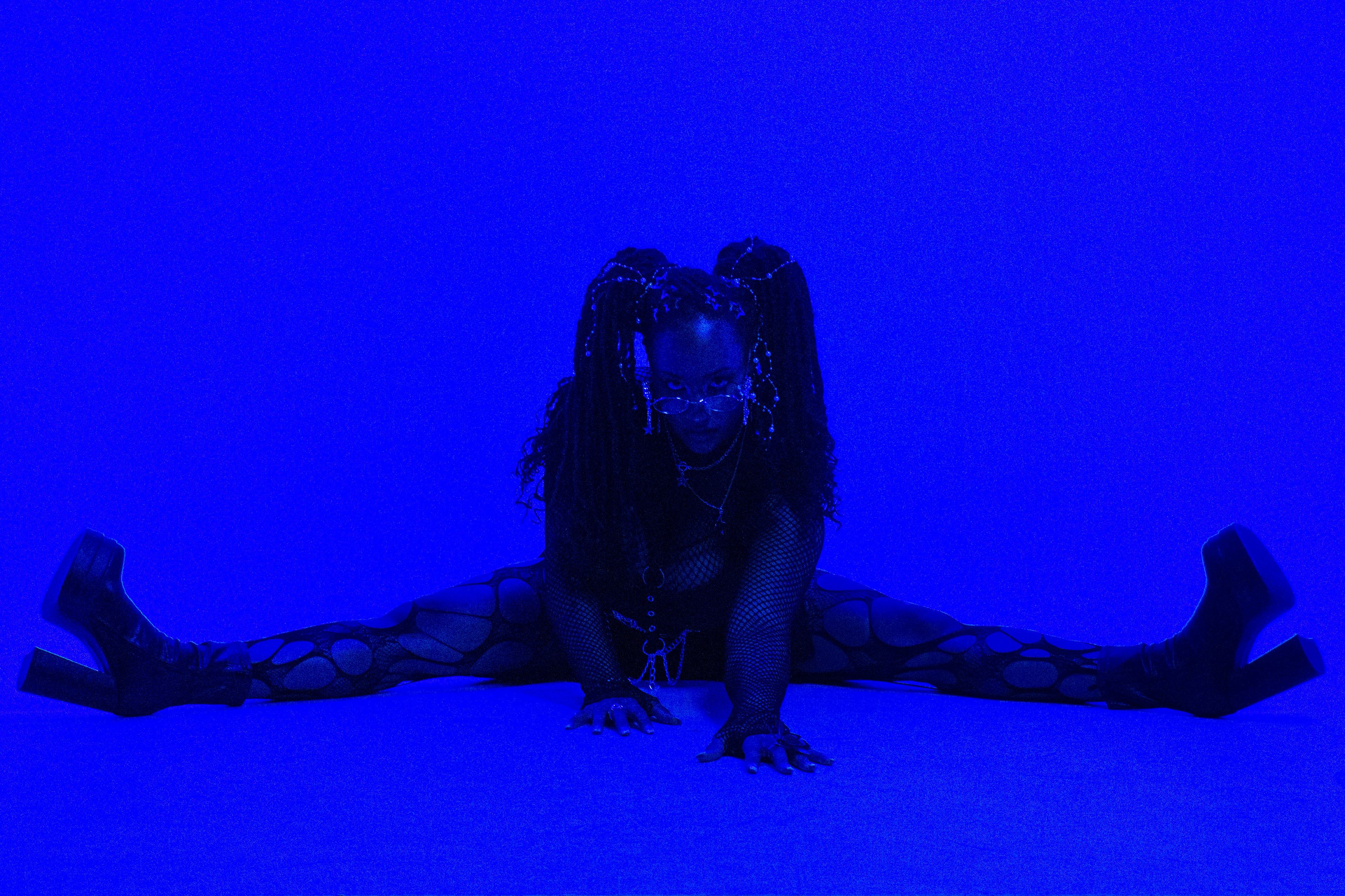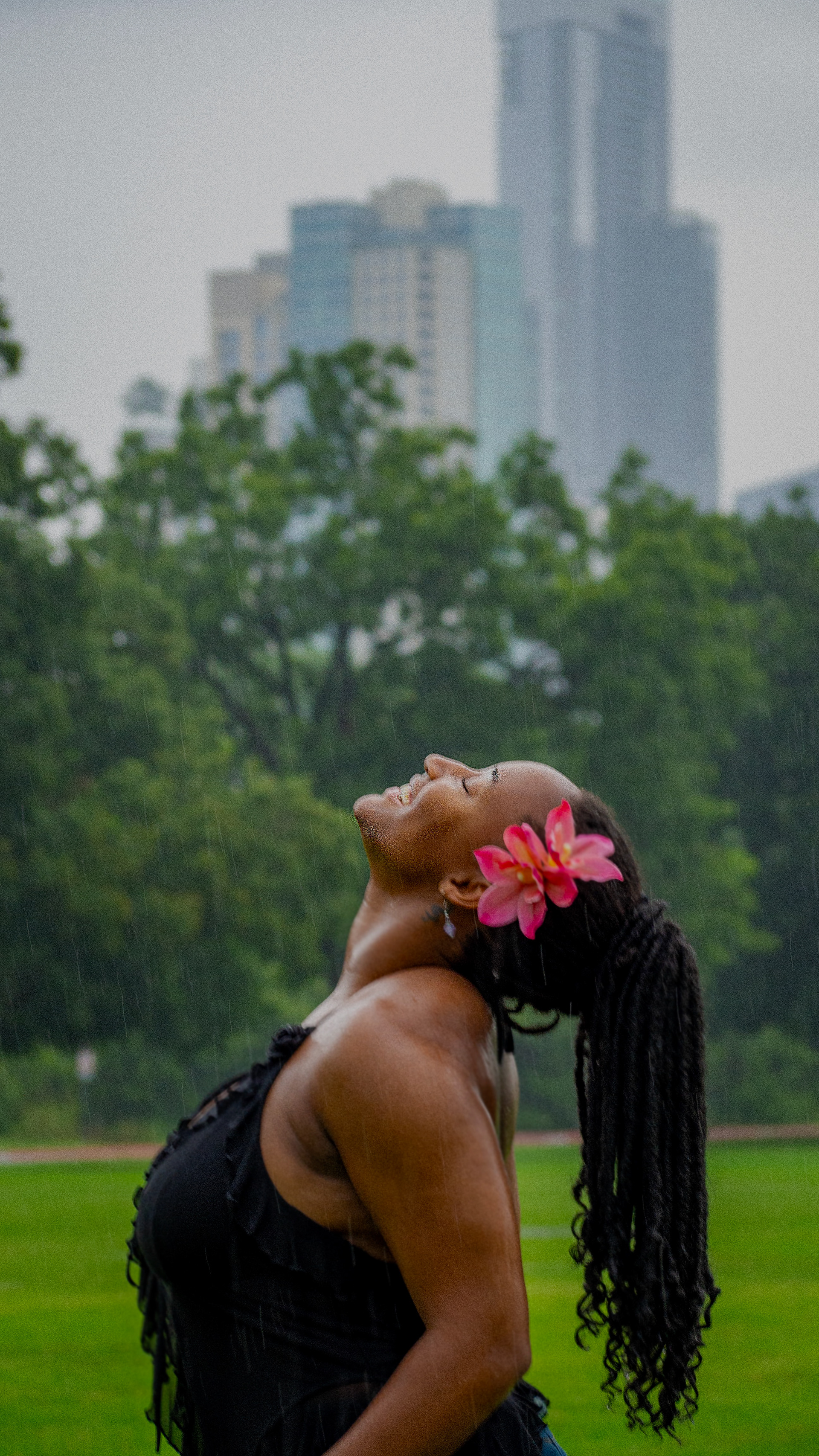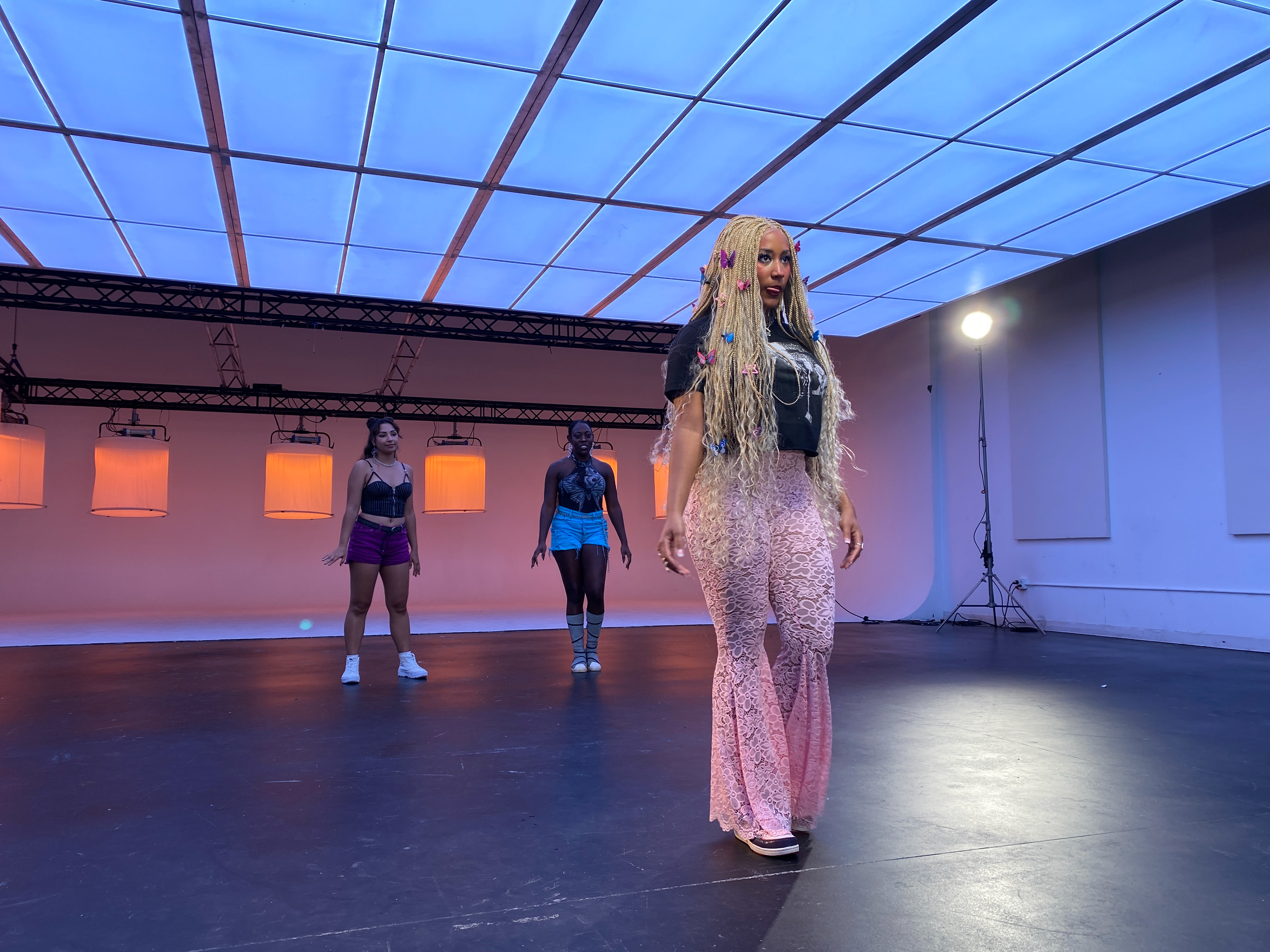 Artist, Marlei, getting ready for another take with back up dancers Cassandra (left) and Bobbie (right).